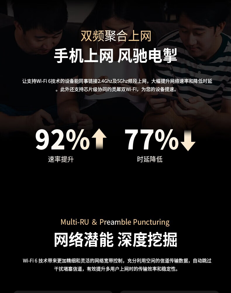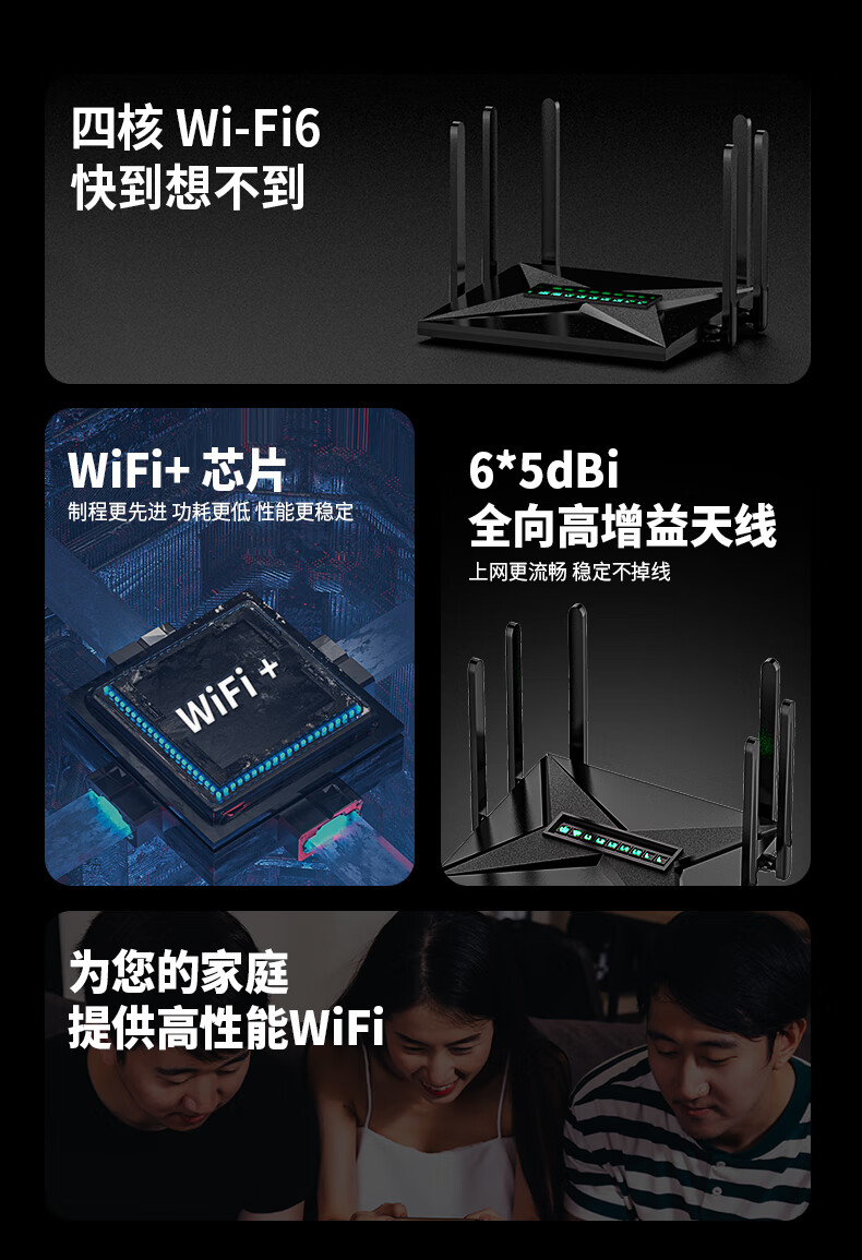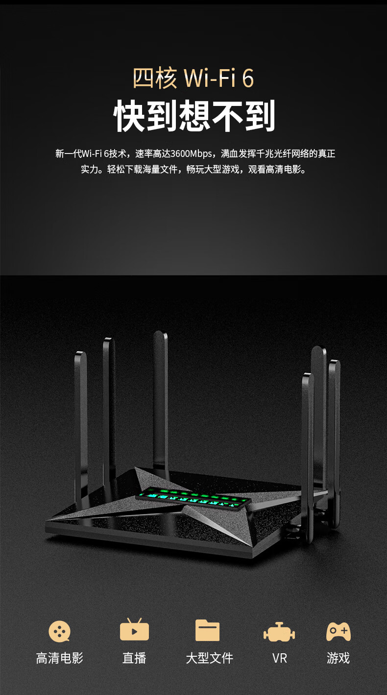 NBKEY2025新款wifi6无线路由器千兆大户型mesh组网路由器六天线四核家用公司网吧用电竞游戏加速穿墙王 刀锋六天线【全千兆5G双频】1800M