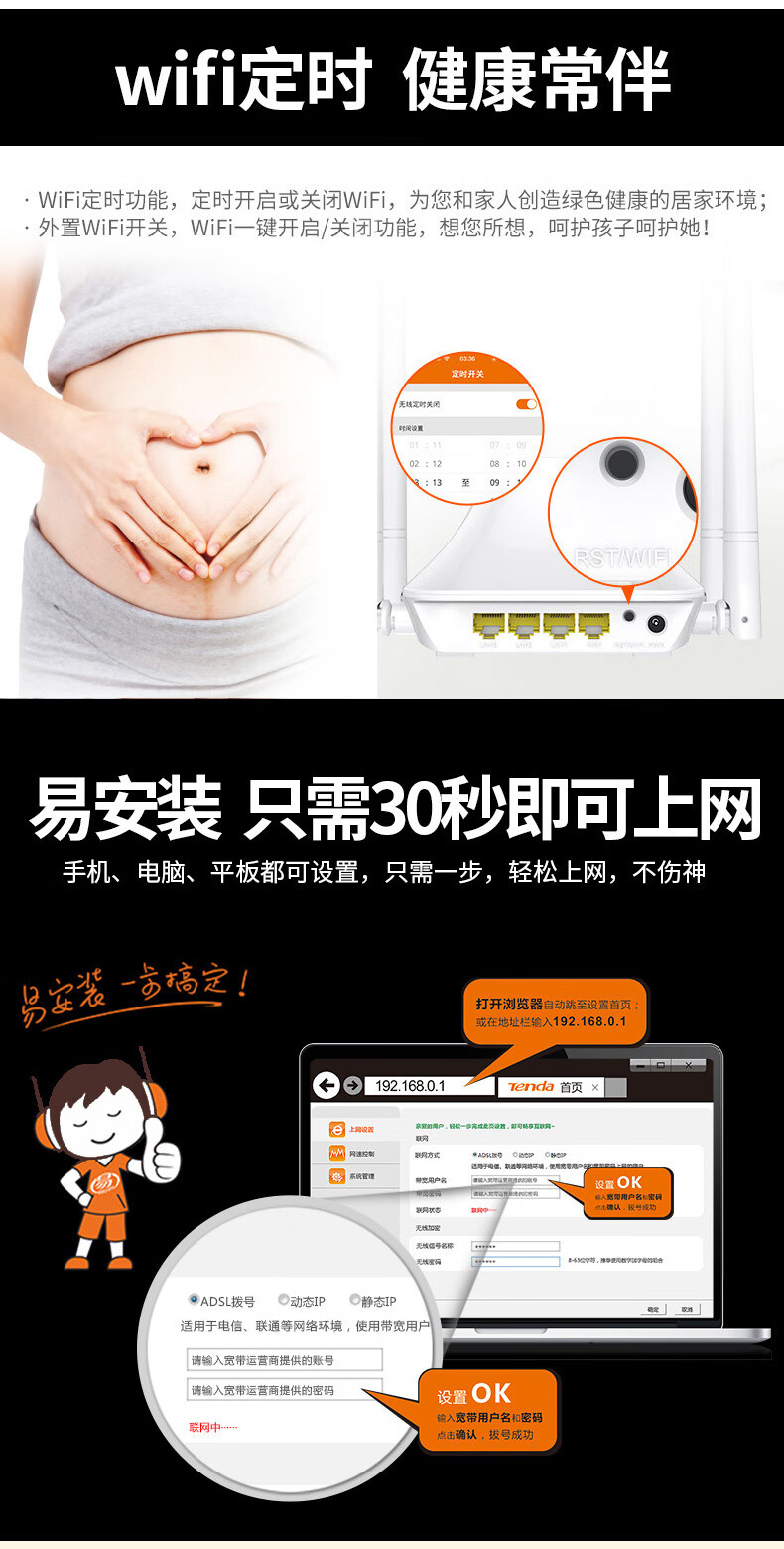 Tenda 全新腾达F3光纤无线路由器穿墙王wifi有线 家用路由器宽带300M 【SG105】5口千兆迷你款交换机 222