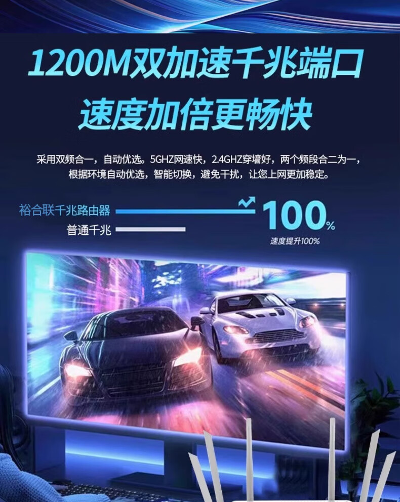 裕合联无线路由器千兆5G双频全屋信号穿墙王150平WIFI6信号放大器高速电竞游戏学生宿舍漏油器家用 白色六天线【可穿墙/稳定不卡顿】+高速网线