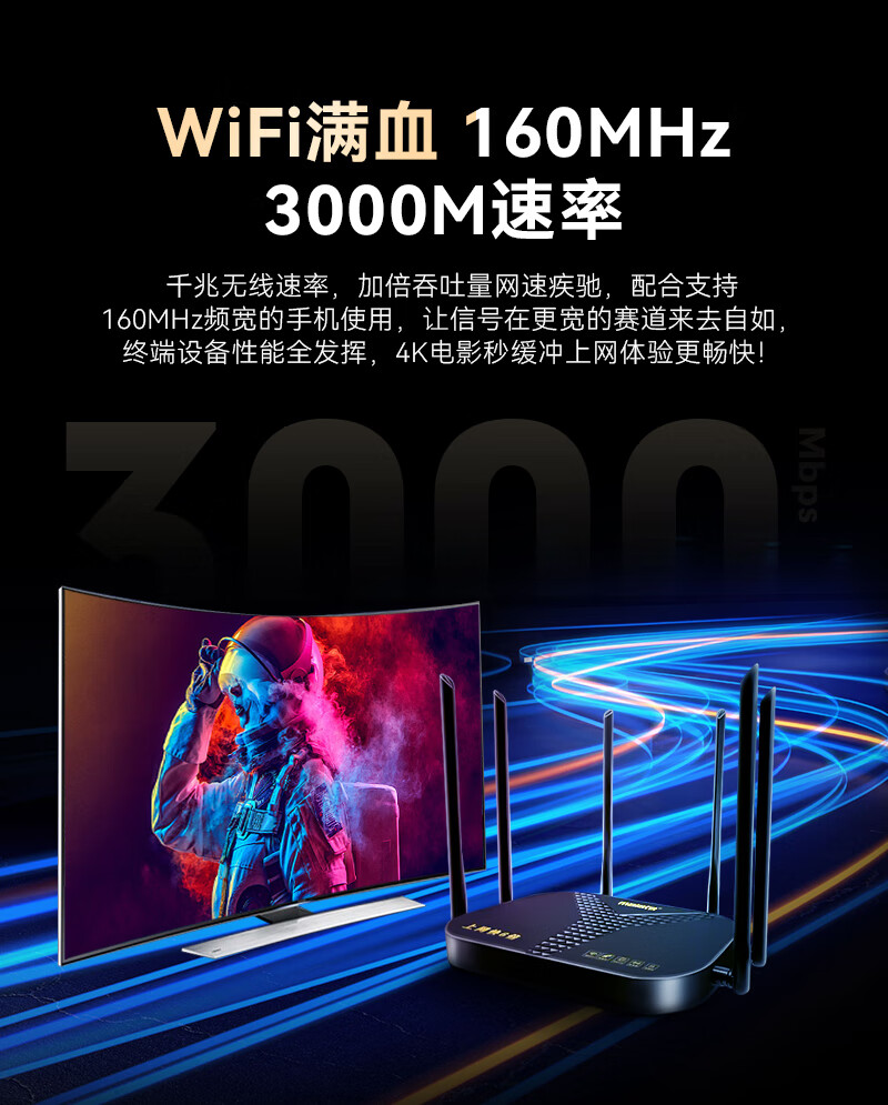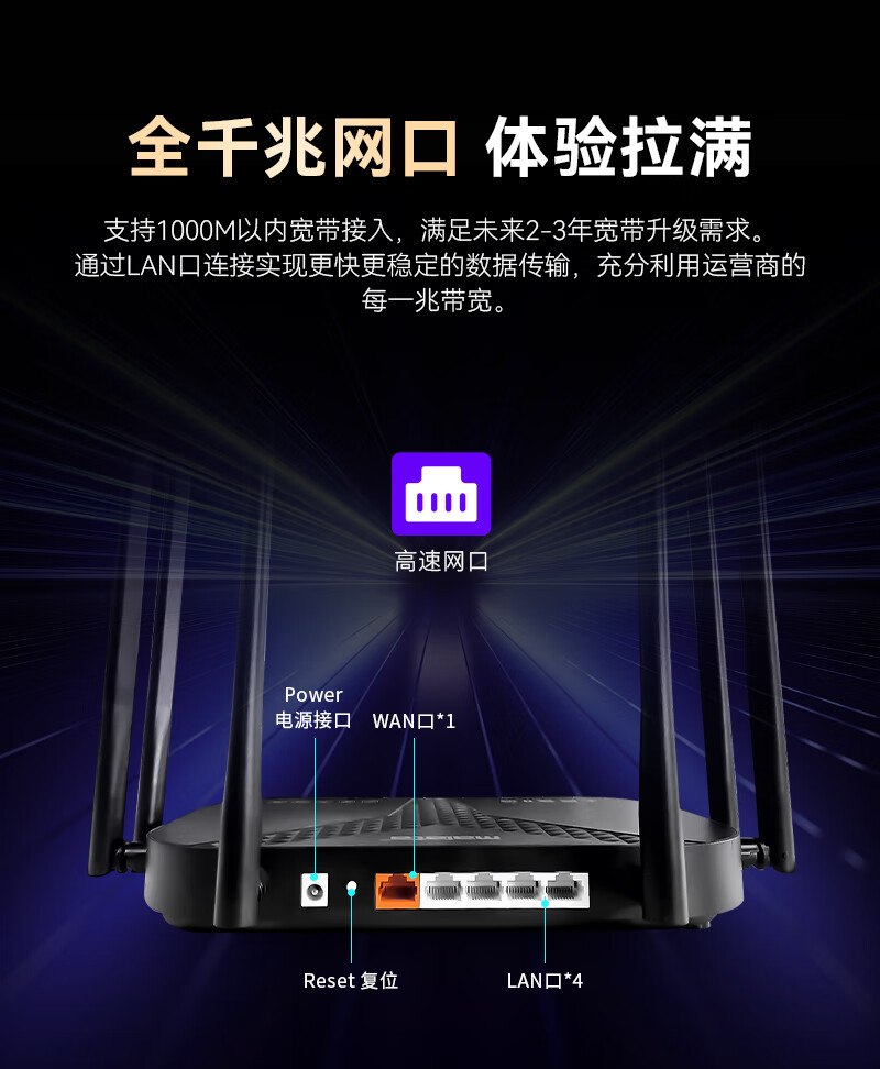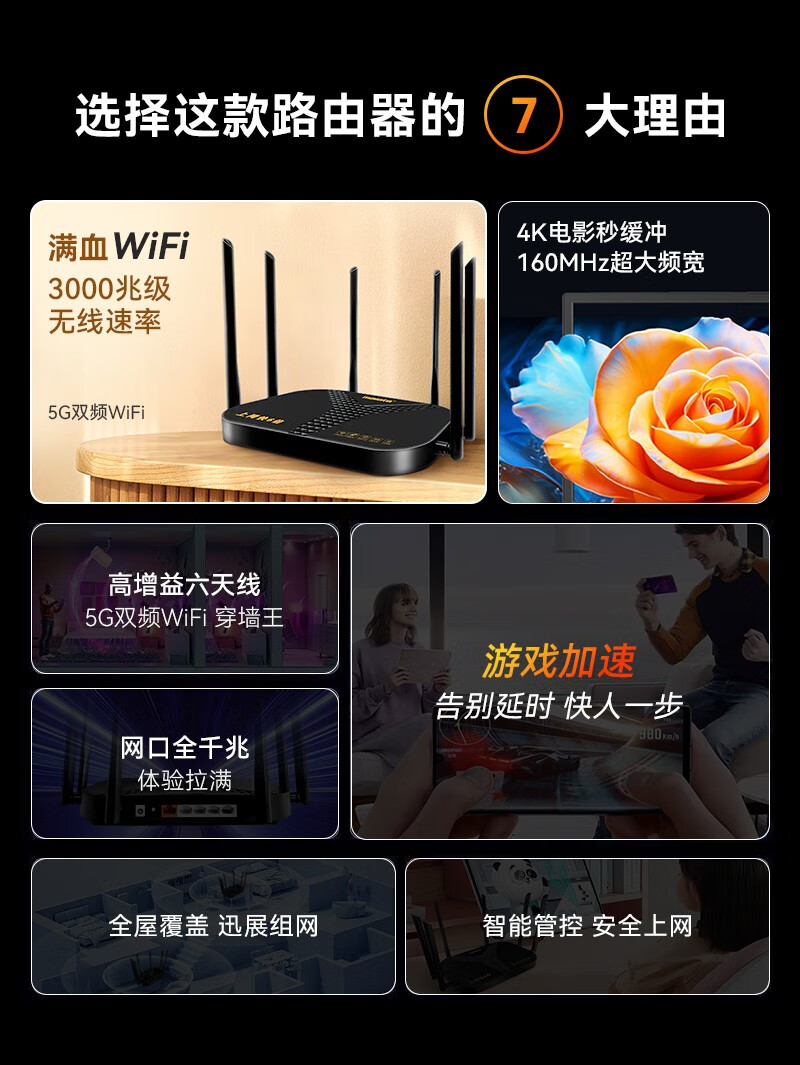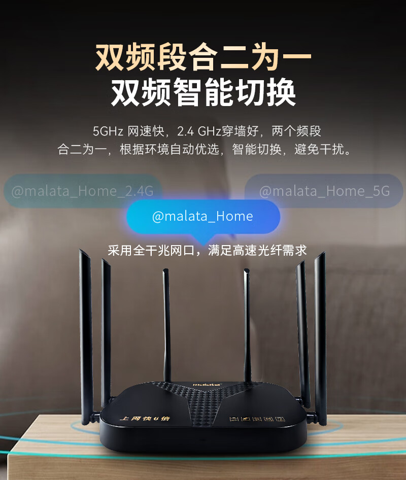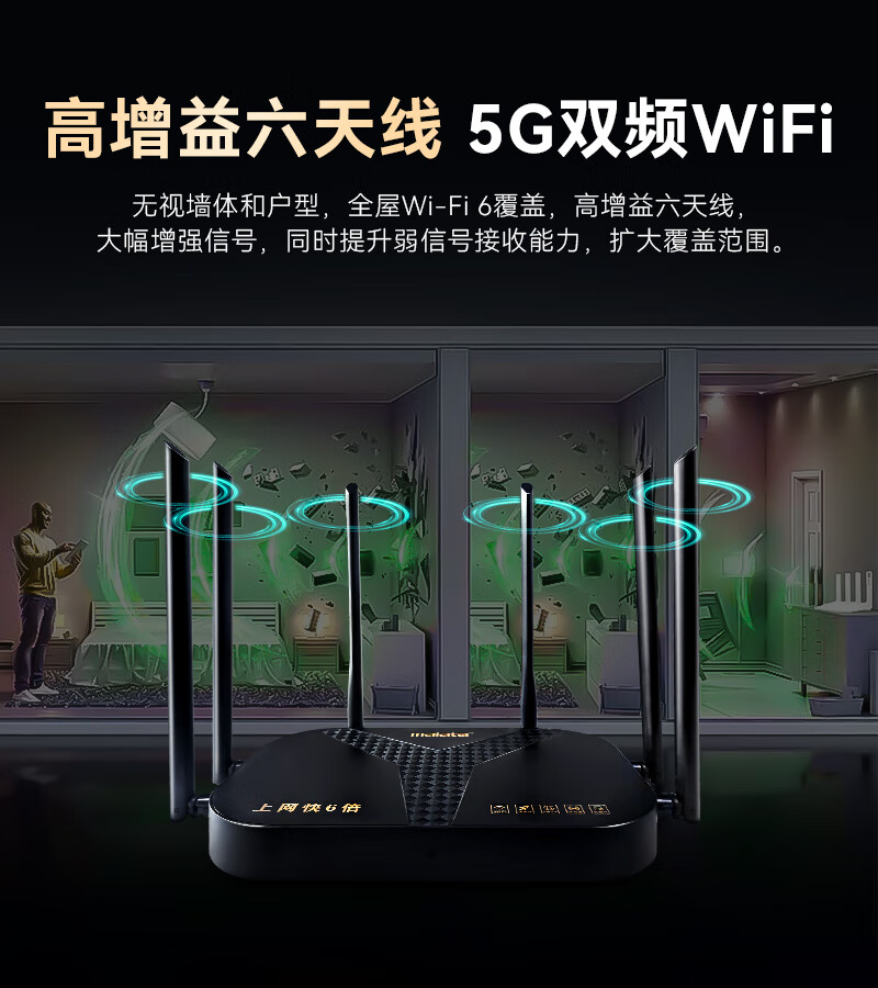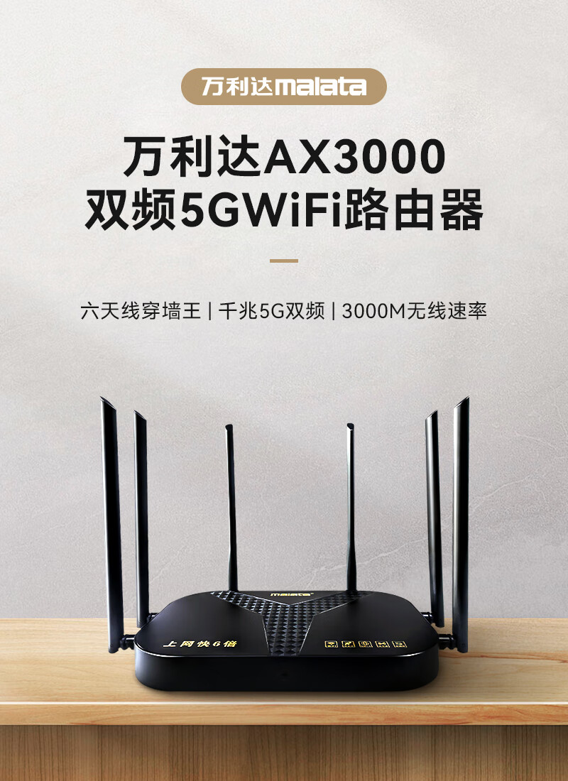 万利达路由器千兆无线穿墙王WiFi网络信号放大器ax3000双频5G六线信号增强 【六天线满血千兆+3000无线速率双频5G】