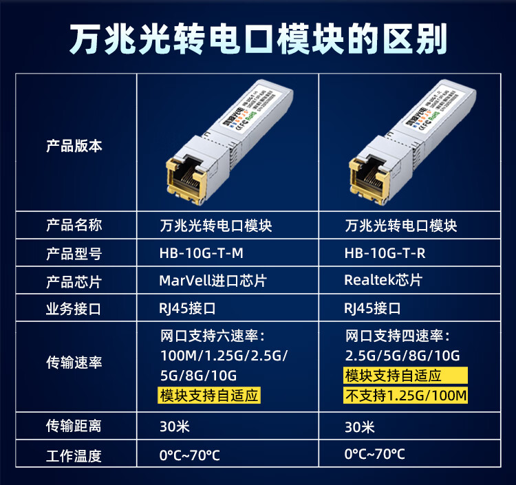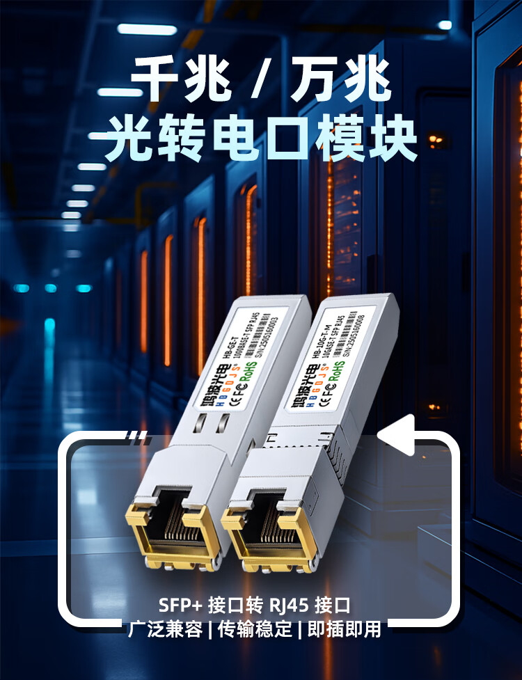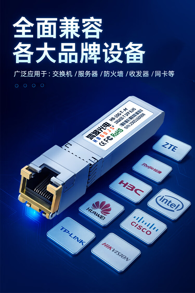 HBGDJS华三H3C万兆电口模块SFP-10G-T光口转网口RJ45兼容华为华三千万兆 千兆2.5G万兆自适应光转电口 10/100/1000BASE自适应 兼容国外设备